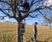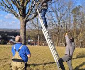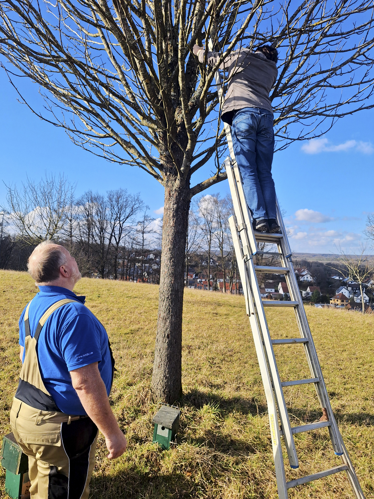 Aufhängen von Nistkästen an der Streuobstwiese in Morlautern