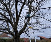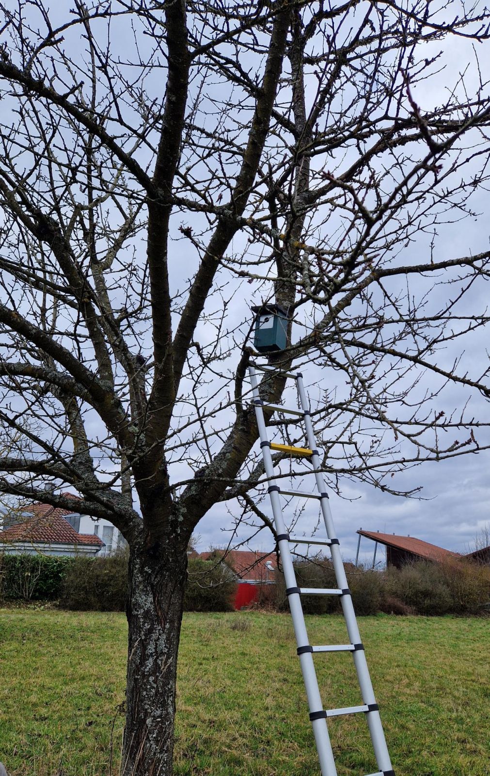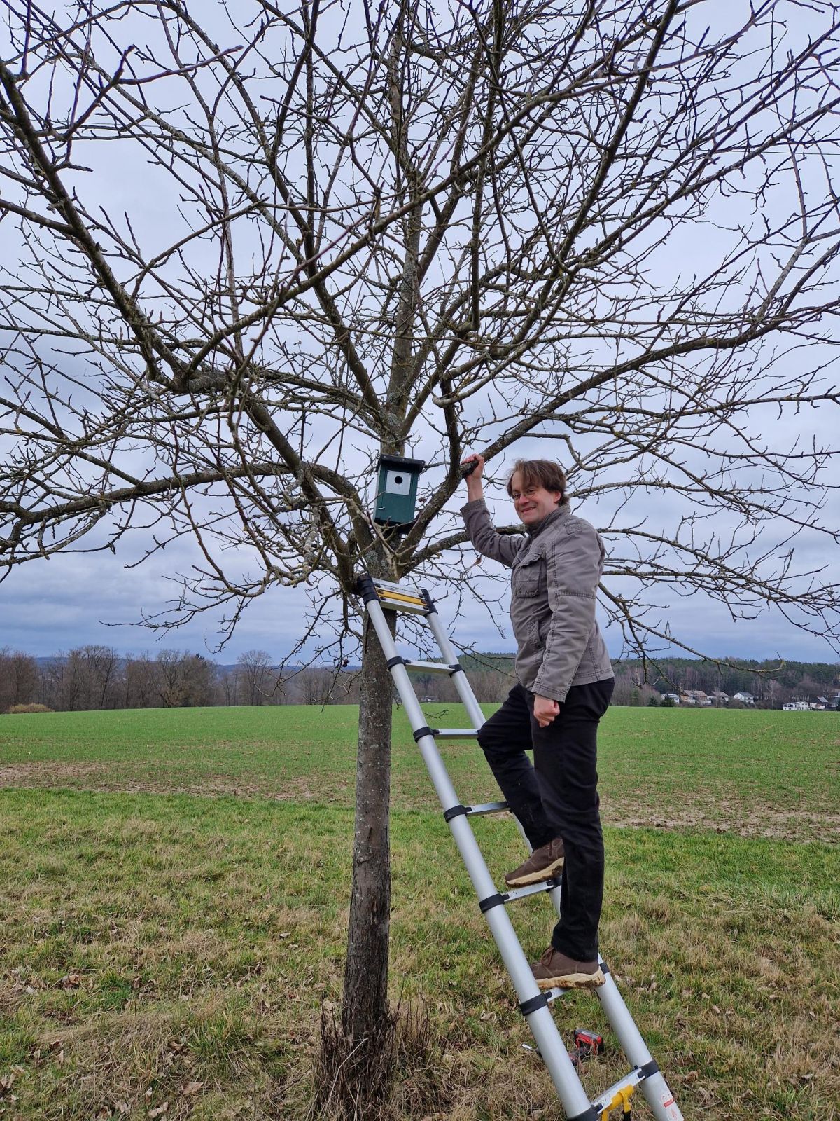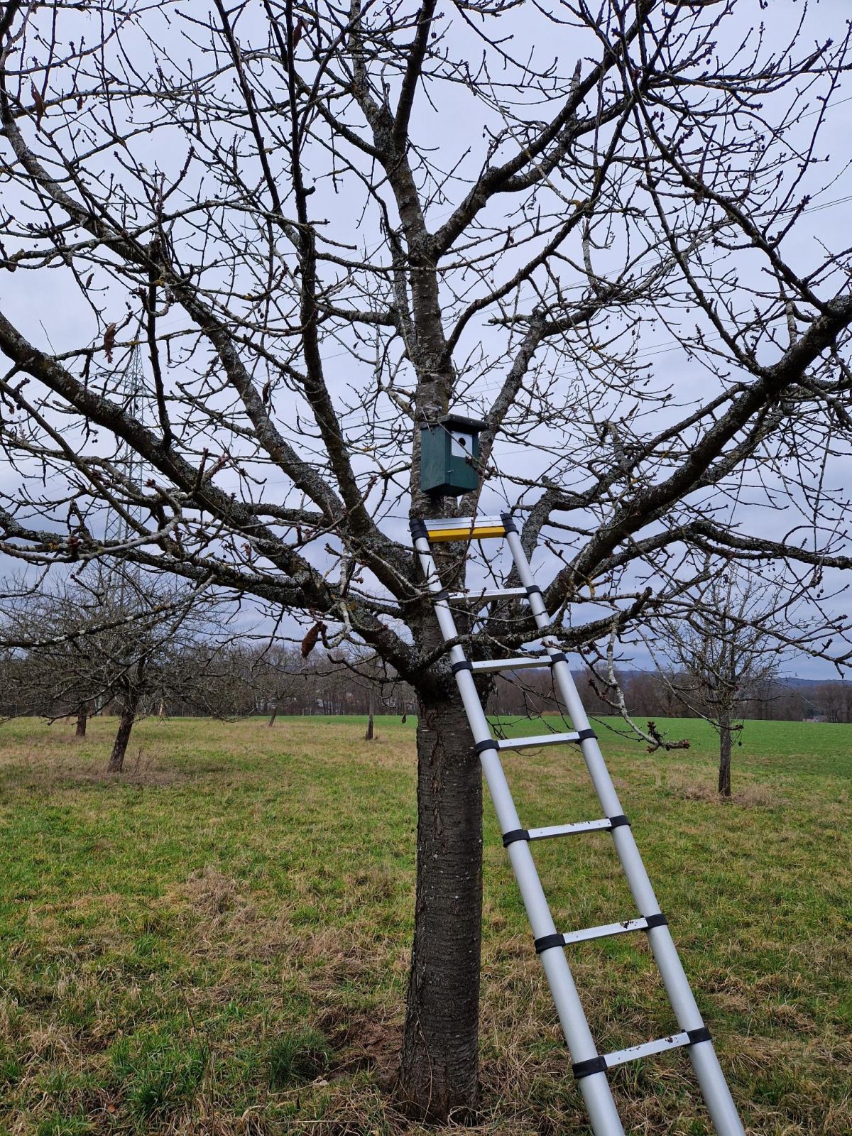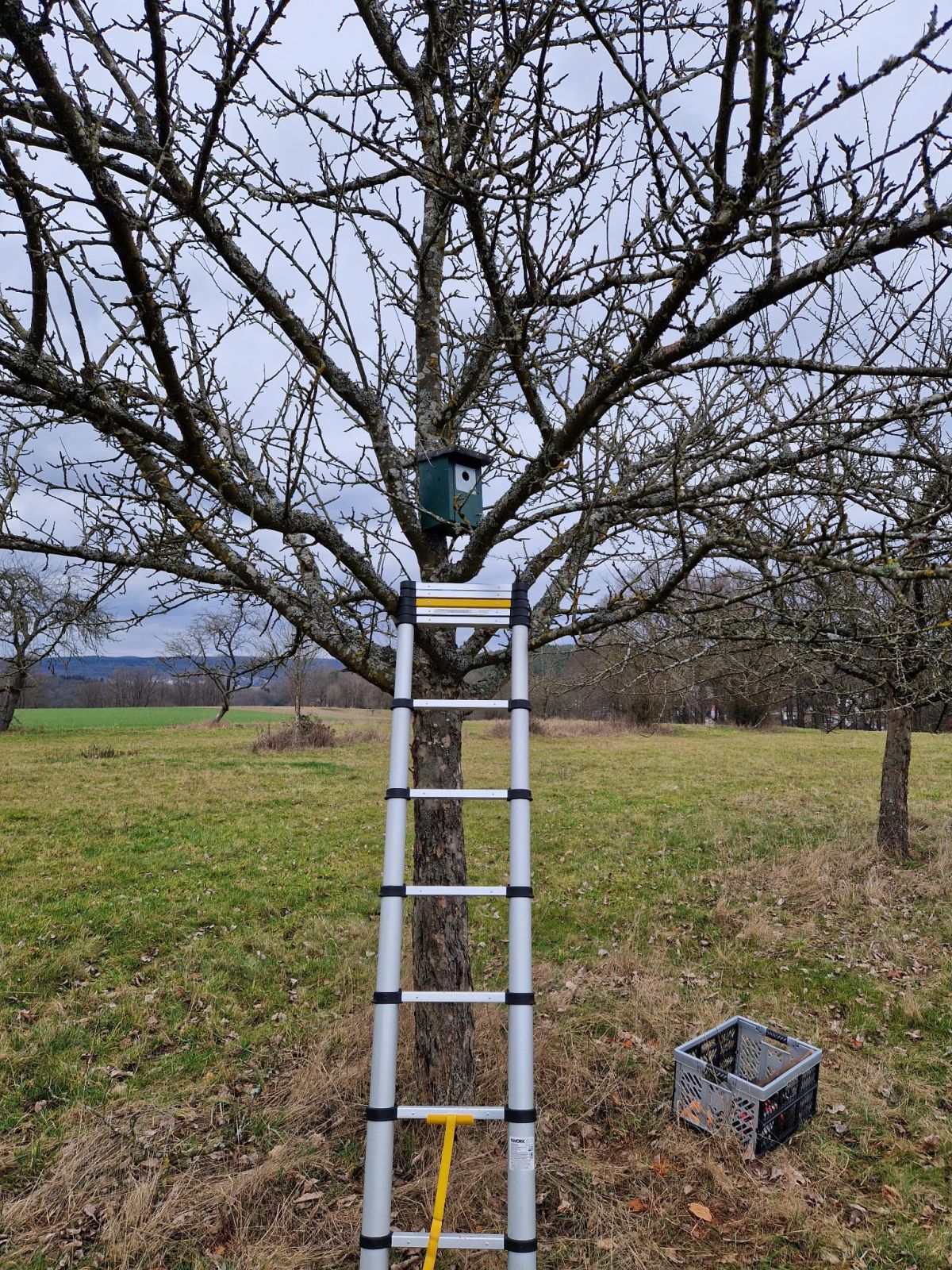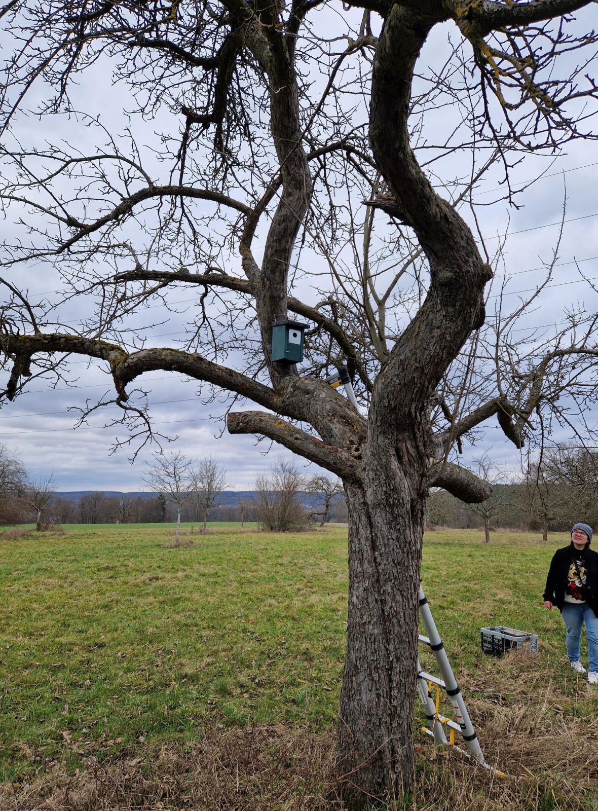 Aufhängen von Nistkästen an der Streuobstwiese in Morlautern