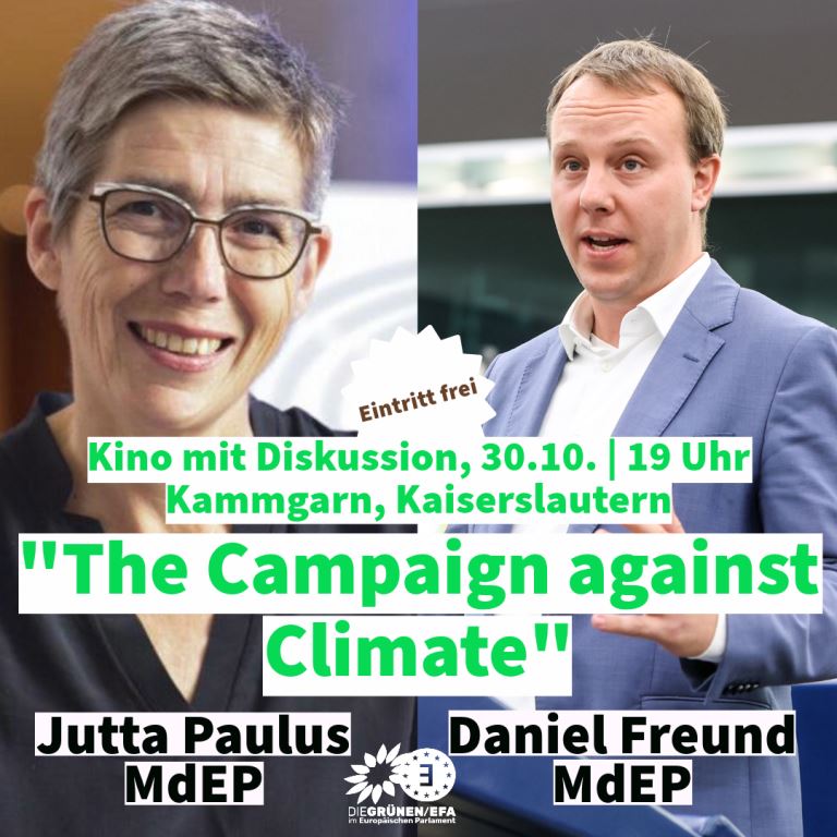 Für ihre Arbeit erhielt InsideClimateNews unter anderem den Pulitzerpreis. Die Diskussionen um das Heizungsgesetz in Deutschland zeigen, dass der Film teils sehr aktuell ist. Die beiden GRÜNEN Europaabgeordneten Jutta Paulus und Daniel Freund möchten den Film bekannter machen und laden daher alle Interessierten am 30.10.23 um 19 Uhr in die ehemalige Schreinerei in der Kammgarn in Kaiserslautern zum kostenlosen Kinoabend ein.